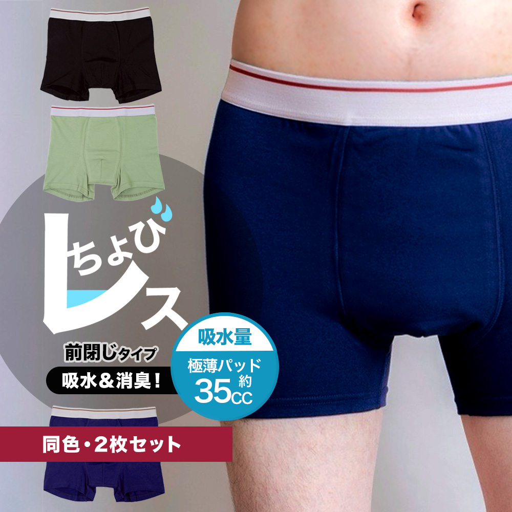 【同色 2枚セット】 尿漏れ 安心ボクサーパンツ ちょびレス 吸水パンツ 35cc マーフィーショップオリジナル メンズパンツ 男性用 前閉じ ボクサーパンツ 東洋紡 TOYOBO galaxy