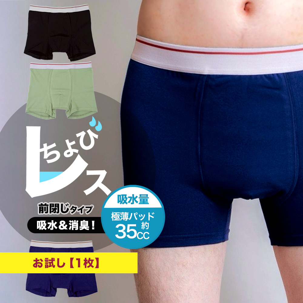 【お試し1枚】 尿漏れ 安心ボクサーパンツ ちょびレス 吸水パンツ 35cc マーフィーショップオリジナル メンズパンツ 男性用 前閉じ ボクサーパンツ 東洋紡 TOYOBO galaxy