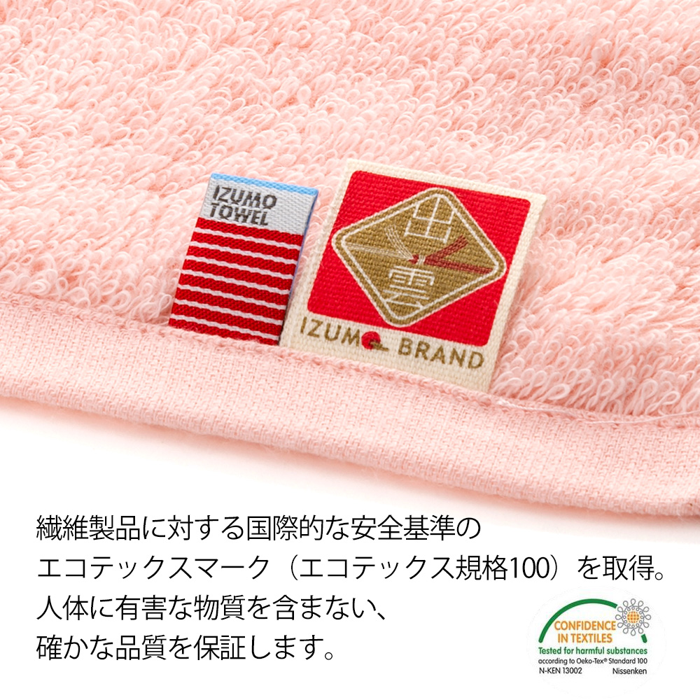 エコテックススタンダード100クラス「製品分類」をクリアしている、出雲タオル「優つつみ」。